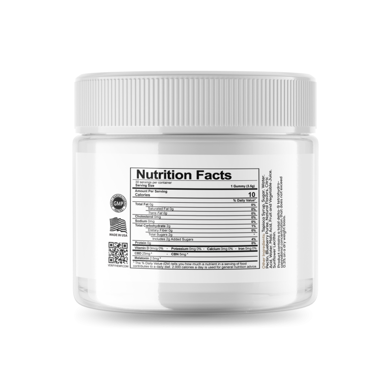 - Precision Dosing: 25mg CBD + 5mg CBN + 2mg Melatonin per gummy